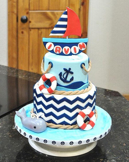 برای اینکه چیدمان و تزیینات تولد زیباتر شود و جلوه ی بسیاری داشته باشد از یک تم خاص پیروی کنید. تم ها به شما در انتخاب کیک و بادکنک و لباس و وسایل دیگر جشن کمک می کند. در ادامه نمونه هایی از کیک های تولد با تم ملوان را برای شما آورده ایم.