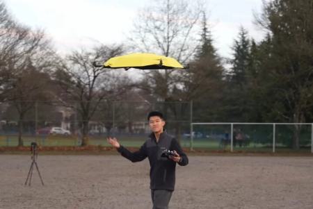 یک یوتیوبر چتری ساخته که همه جا کاربر را دنبال می کند تا او را از خیس شدن زیر باران حفظ کند.