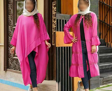 مانتو سرخابی با رنگ شاد و زنده ای که دارد توجه همه را به خود جلب میکند و به راحتی میتوانید با رنگهای مختلف آن را ست کنید.