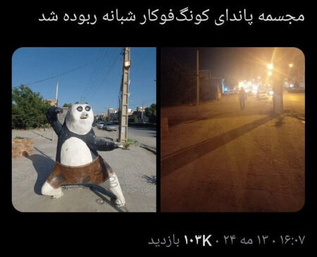خبرآنلاین/تصاویری عجیب در شبکههای اجتماعی دست به دست میشود از یک توئیت که از سرقت شبانه مجسمه پاندای کونگفوکار در کرمانشاه خبر میدهد. اما ماجرا از آنجایی عجیبتر شد که دو تبلیغ برای فروش یک مجسمه در دیوار توجه همه را جلب کرد.