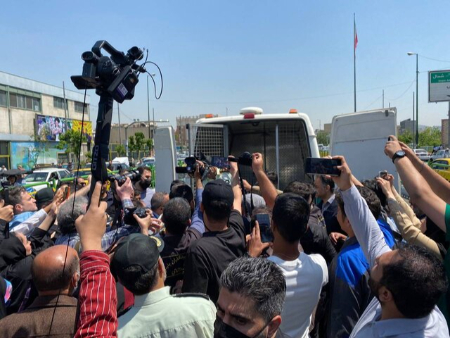 مقابل یکی از شعبههای دادگاه خانواده زن جوانی در حالی که یک روسری قرمز در دست داشت و با بیقراری قدم میزد .