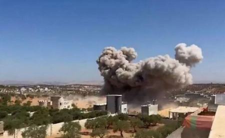 همزمان با پرواز جنگندهای ناشناس بر فراز حومه ادلب، انفجار شدیدی در این منطقه رخ داد که موجب آتشسوزی و کشته و زخمیشدن دهها غیرنظامی شد.