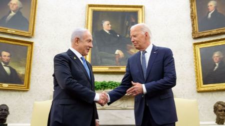 جو بایدن -رئیسجمهور آمریکا- طی امروز پنجشنبه با بنیامین نتانیاهو -نخستوزیر اسرائیل- در کاخ سفید دیدار کرد. بایدن در این دیدار بر آتشبس در غزه تأکید داشت.