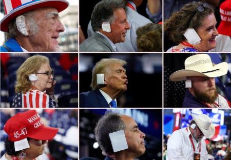 خبرفوری نوشت: این تصاویر از هواداران دونالد ترامپ، رئیس جمهور پیشین آمریکا، در جریان کنوانسیون ملی حزب جمهوریخواهان در میلواکی منتشر شده است که آنها را با گوشهای بانداژ شده به نشانه حمایت از او نشان میدهد.