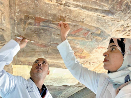 باستانشناسان مجبور شدند با ابزارهای مختلف از جمله خلال دندان، دوهزار سال کثیفی و آلودگی را از یک اثر هنری مصر باستان پاک کنند تا رنگ اصلی جشن روز سال نو در مصر باستان پدیدار شود.